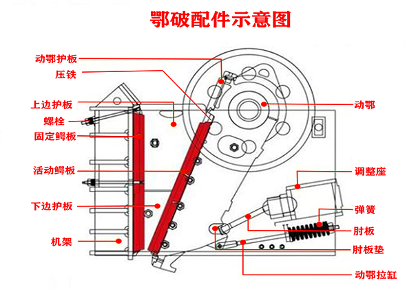顎板既是顎式破碎機(jī)的主要部件,有動(dòng)顎板,靜顎板,根據(jù)顎式破碎機(jī)型號(hào)的不同,有多種型號(hào)尺寸,一般采用高錳鋼材質(zhì)。